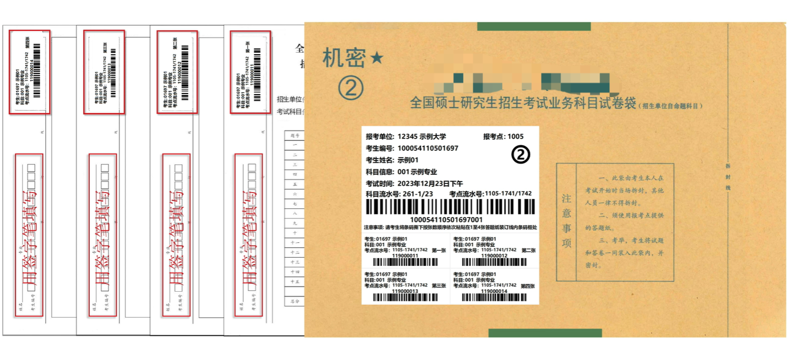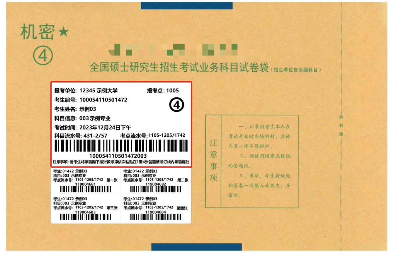 考生拿到自命题试卷袋后,首先请认真核对试卷袋上的个人信息,包括姓名、考生编号、考试科目等。如信息有误,请及时向监考员反馈。个人信息确认无误后,再将条形码按顺序依次揭下,并粘贴在1至4张答题纸对应的条形码粘贴框处。