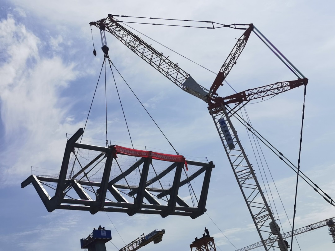 公司承接的二期项目也已于2020年4月5日开工建设。8月10日上午10点18分,钢结构首吊仪式在工地现场顺利举行,一根长24米、宽15.7米、高6.6米、重68吨的桁架缓缓提起,精准入位完成吊装,标志着二期项目进入全面快速建设阶段。二期计划于2022年7月投入使用。