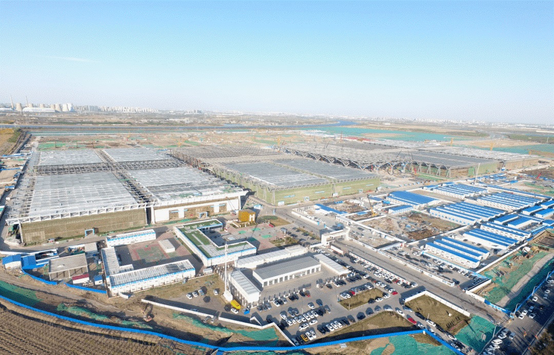 国家会展中心(天津)分两期建设,总建筑面积134万平方米,一期项目总建筑面积约79万平方米,预计2021年6月投入使用,一期展馆区于2019年3月29日开工建设。