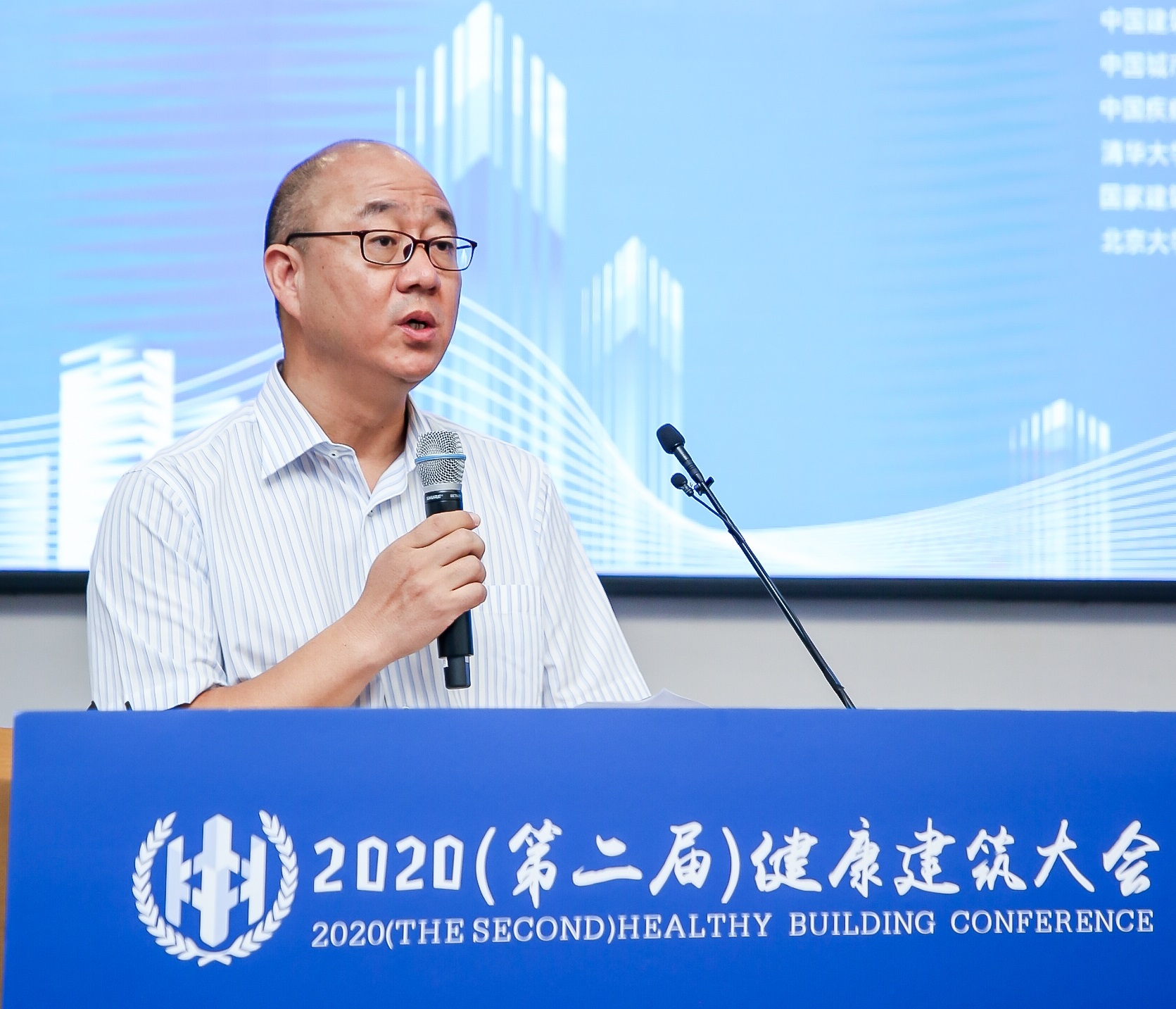 2020年9月8日,由公司主办的“2020(第二届)健康建筑大会”顺利召开。公司总经理、党委副书记许杰峰为大会致辞,副总经理王清勤主持大会。