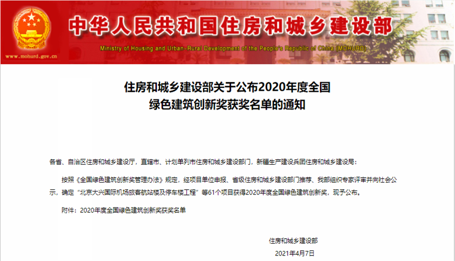 为推动绿色建筑创新、促进绿色建筑高质量发展,根据《全国绿色建筑创新奖管理办法》,住建部组织开展了2020年度全国绿色建筑创新奖评审工作,并于近日公布了获奖结果。