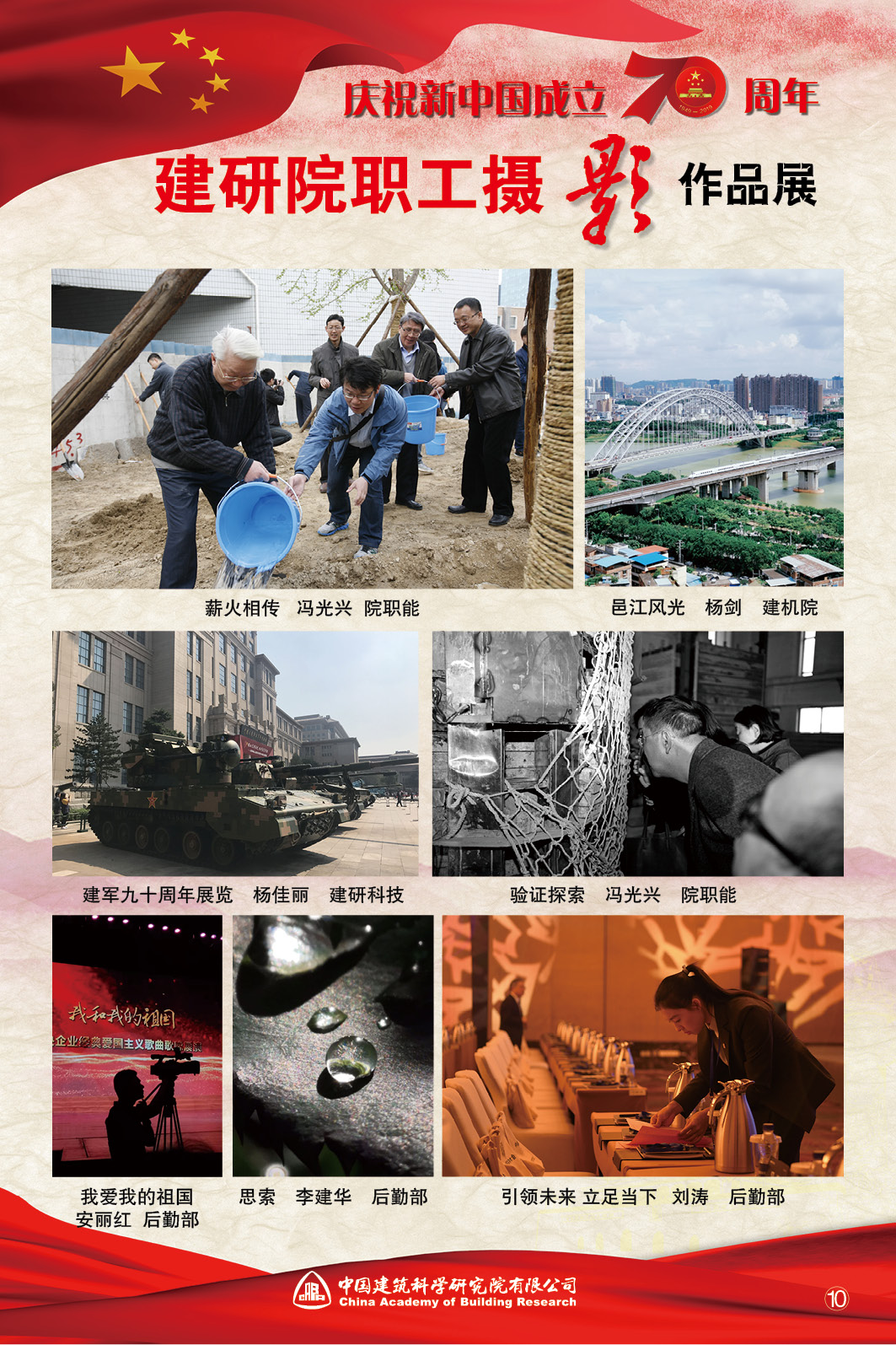 由公司工会举办的“庆祝新中国成立70周年建研院职工摄影展”于9月23日上午9:00在公司宣传橱窗正式展出。