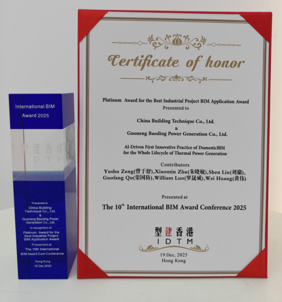 近日,型建香港(IDTM)举行的2025年度“第十届国际BIM大奖赛颁奖典礼暨建筑科技论坛”正式揭晓评审结果。由构力科技联合国能保定发电有限公司完成的“AI驱动的火电国产BIM全生命周期首次创新实践”项目荣获第十届国际BIM大赛“项目类-最佳工业项目BIM应用大奖-铂金奖”,在最佳工业类项目中排名第一。