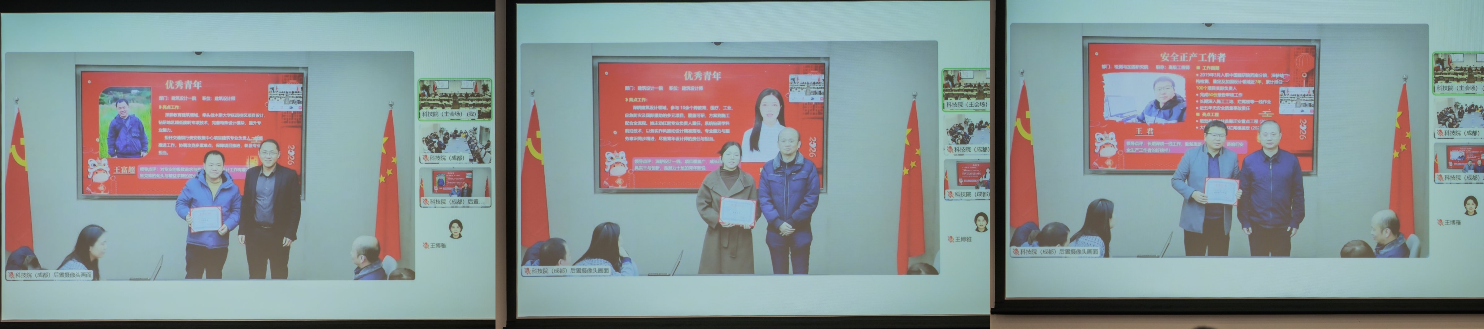 表彰环节,参会领导为2025年科技院优秀青年、优秀经营管理者、安全生产工作者颁发荣誉证书。