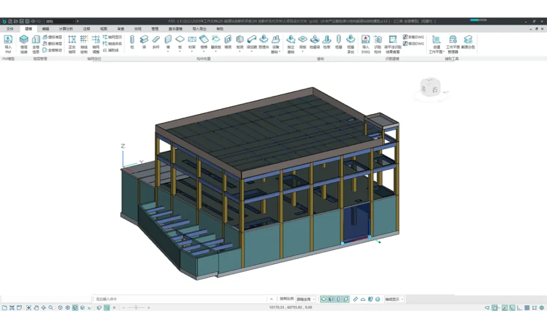 BIM技术创新应用:项目运用PKPM-BIM软件开展全专业综合优化,缩短设计变更配合时间;在幕墙深化、管线综合布置等环节实现精准优化,在不影响设计效果的前提下提升空间利用率,凸显构力科技研发软件在公共建筑设计中的高效赋能作用。