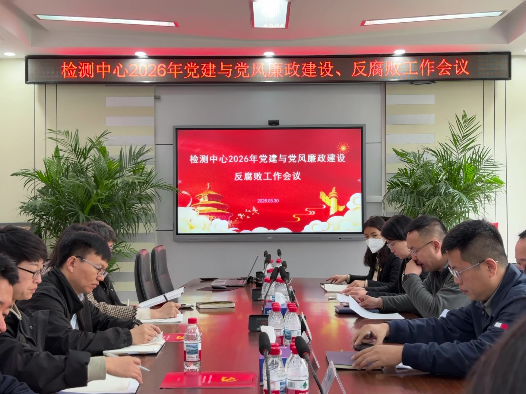 3月30日,检测中心召开2026年党建与党风廉政建设、反腐败工作会议,总结2025年党建与党风廉政建设工作,部署2026年重点任务,开展警示教育。检测中心领导班子成员出席会议。会议由检测中心党委副书记、总经理胡家僖主持。