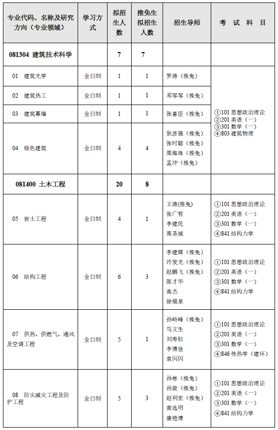 2.085900土木水利招生专业“09 土木工程”含岩土工程、结构工程、防灾减灾工程及防护工程等研究方向;“10 人工环境工程(含供热、通风及空调等)”含供热、供燃气、通风及空调工程相关研究方向。
