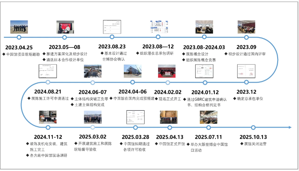 中国建研院作为大阪世博会中国馆项目全过程工程咨询单位,自2023年4月以来,在中国贸促会的坚强领导下,在各部委相关单位支持下,依托于中国馆的建设及运营,践行习近平生态文明思想、讲好中国故事,出色地完成了本项目全过程项目管理、工程勘察、方案深化设计、工程设计、展陈设计、室内设计,景观设计、招标代理与采购咨询及全过程造价咨询、工程监理、建筑信息模型(BIM)设计等全过程咨询工作。从现场踏勘到如期开工再到竣工验收的建设过程,从开馆仪式到中国国家馆日活动再到中国馆圆满落幕的运营阶段,中国建研院始终以全专业的综合技术优势、全过程的精细化管理、全身心的技术服务奋战于中国馆一线,助力中国馆建出“中国速度”、展现“中国质量”、树立“中国品牌”、呈现“中国文化”,为大阪世博会留下了浓墨重彩的“中国印象”。