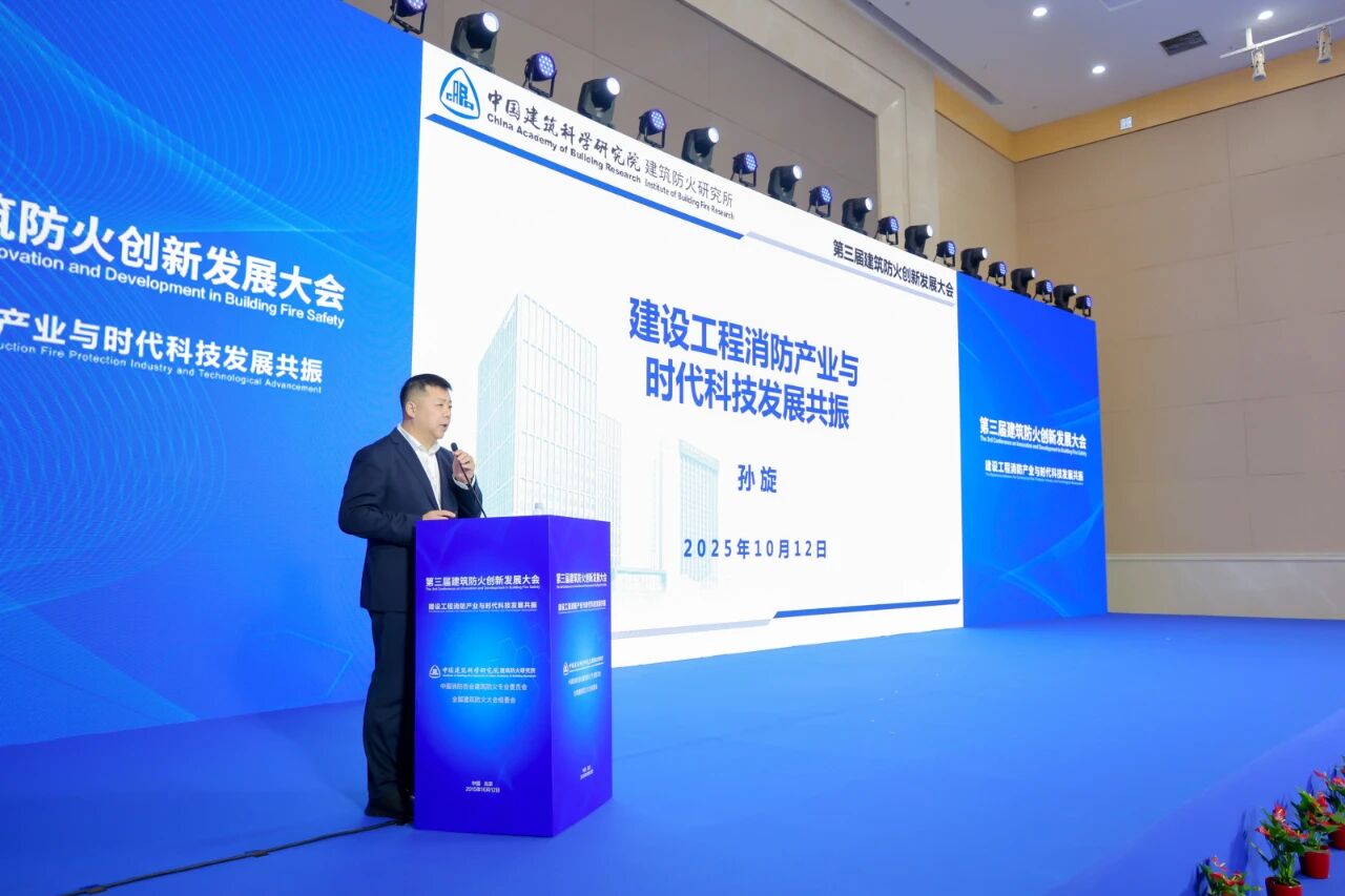 中国建研院建筑防火研究所所长孙旋作题为《建设工程消防产业与时代科技发展共振》的主题报告。