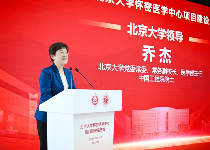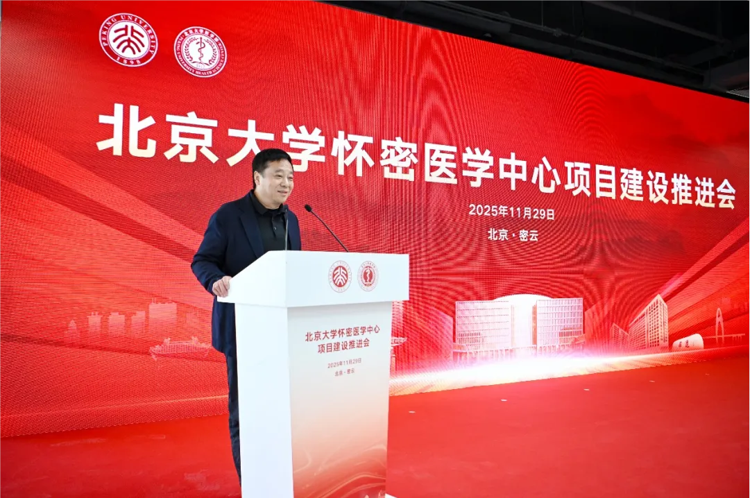 乔杰在讲话中表示,站在“十四五”收官与“十五五”开局关键节点,北京大学怀密医学中心作为北大医学未来发展的重要战略,承载着北大医学城、世界医学谷构想。中心以创建世界一流医学教育、前沿交叉研究和创新转化“三个中心”为目标,助力前沿交叉研究与科研产业融合,积极服务首都及密云发展,为北京国际科创中心与国家医药卫生事业注入北大医学新动能。