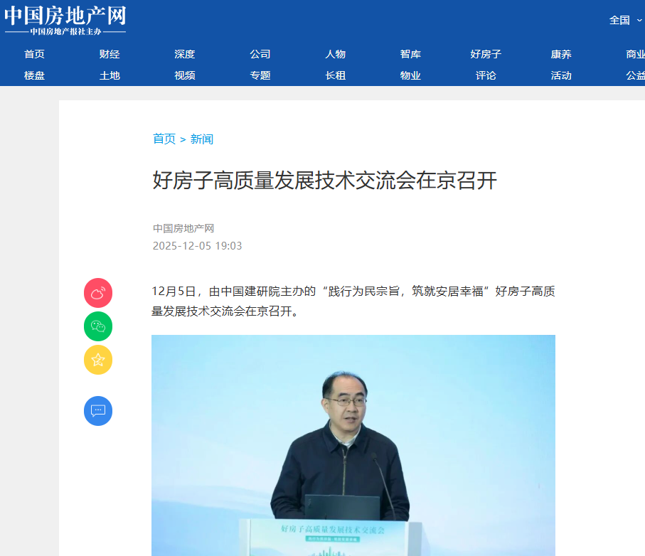 中国房地产报全面报道了中国建研院主办的“践行为民宗旨,筑就安居幸福”好房子高质量发展技术交流会,展开介绍了成果发布、共建倡议和技术交流环节。