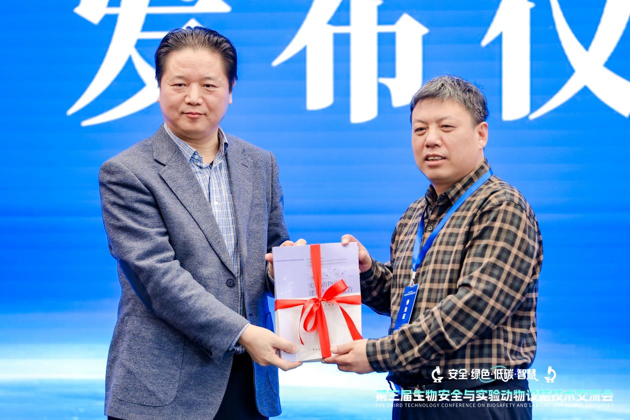 会议同期举办了《实验动物设施建设与发展报告》发布仪式,许杰峰、曲凤宏、刘江宁、李军、谭枫、魏强、王清勤、赵力等嘉宾共同见证,主编王清勤代表编委会向读者现场赠送图书。